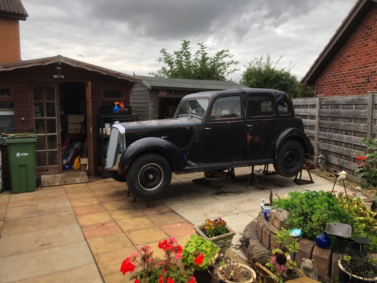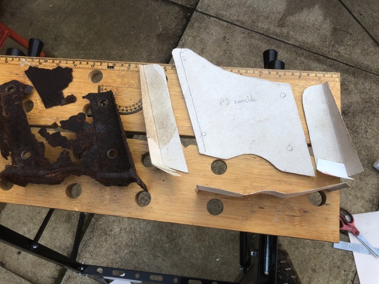 The rear suspension on a P3 is unique to Rover, they decided to do away with a full chassis and stopped the chassis at the front of the rear springs. The rear shackle is fastened to a cross tube bolted to the body shell via brackets fastened to the inner wings. They have reinforced basically an earlier body shell that had a full chassis, and the brackets fastened to the body end up with 5 layers of steel so it's a massive rust trap. To do a proper repair the rear springs have to come off. To give access I removed the rear wings and as can be seen they are going to need a repair to the flange. This led to more jobs! The fuel filler tube had corroded through where it passes through the inner wing. I repaired it with copper tube silver soldered together and then sweated into the body. As the fuel tank was now open, I decided to remove it, which gives me even more access. The springs have a massive set on them and they need to be compressed to get them off and on. To that end I made a spring clamp as per the dimensions in the service buletins.