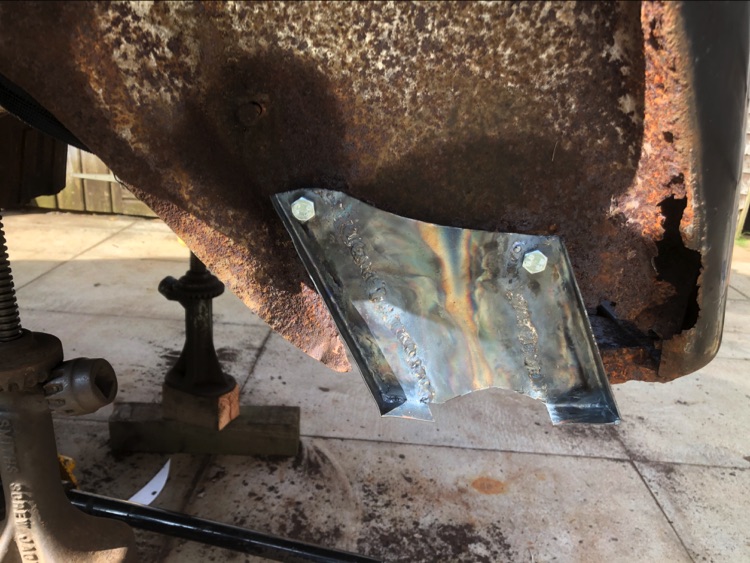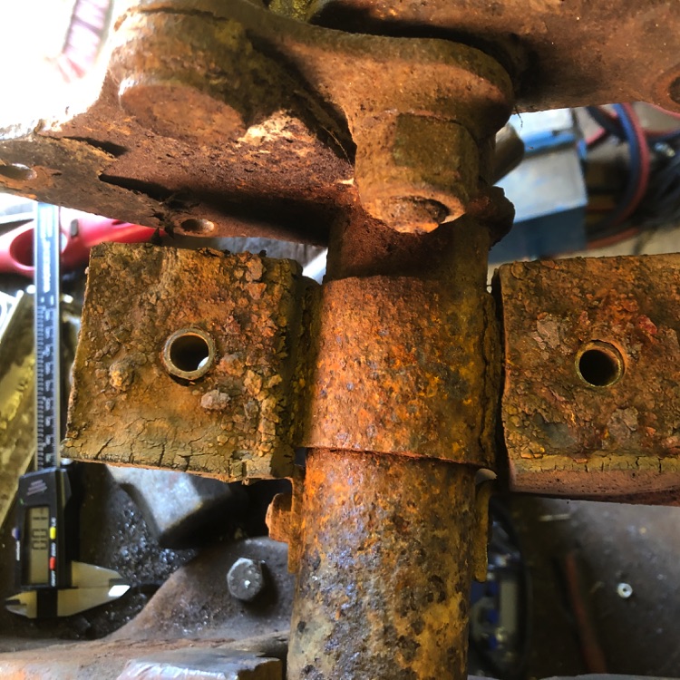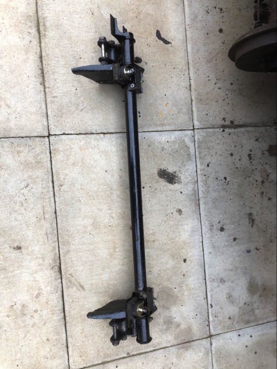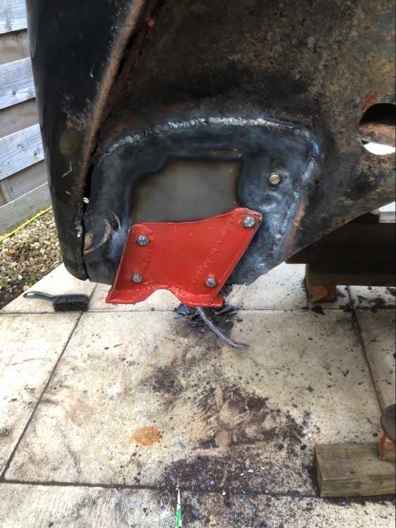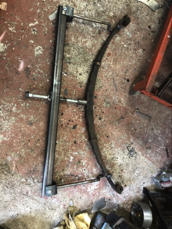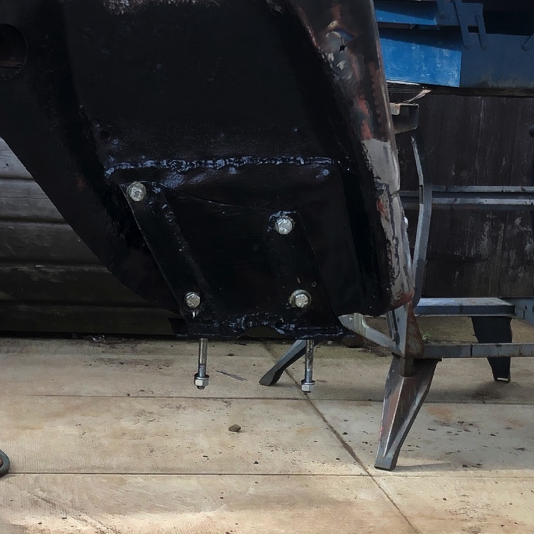 Once the spring was out of the way I could unbolt the cross tube ready for overhaul. Next the mounting plate was removed, I made 2 new ones using the old one as patterns. The inner arch and the inner boot floor were then repaired. The shackles were removed and the cross tube cleaned up and new metalastik bushes installed. Many of the bolts were replaced as they were badly waisted.