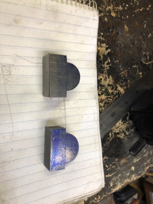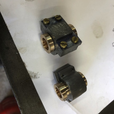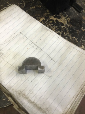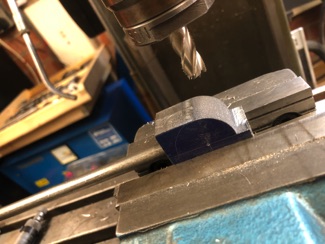 The Main bearing housings are of steel, they split at the sump line, with one half being bolted to the cranckcase sides. To profile the curve I used the 'R' function on the DRO which allowed me to machine the shape using the X & Z axis co-ordinates. I set the DRO to take 0.010" increments, which just left a rough surface that was easily dressed to shape. I then machined the pocket and made the bottom bearing half. The complicated shape is to allow for the sump flange. All will become clearer on the next page when you will see it in place.