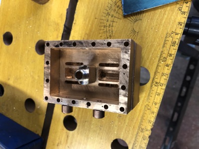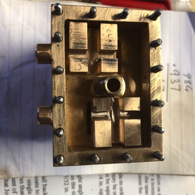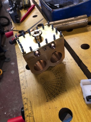 Moving on, the next item was the valve chest, the faces were cleaned up in the 4 jaw chuck and the stud pattern laid out using the DRO.